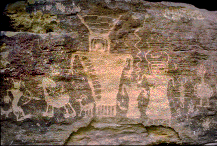 now central Utah. The stylized human figures, possibly a family, the scorpion,