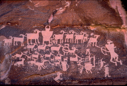 This petroglyph, consisting of both hunters and prey, was etched into this rock wall about 1000 years ago. Although agrarian, this ancient society that once lived in what is now central Utah, held hunting in high esteem.